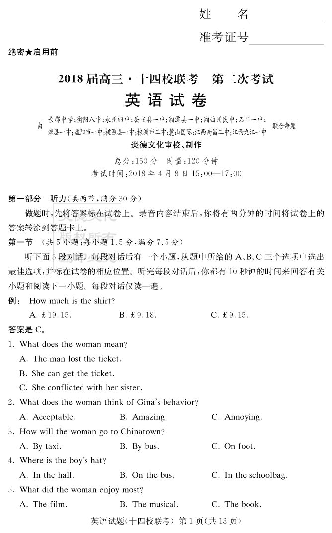 下一篇:【語文】炎德英才大聯(lián)考2018長(zhǎng)郡中學(xué)高三8次月考(十四校聯(lián)考二)