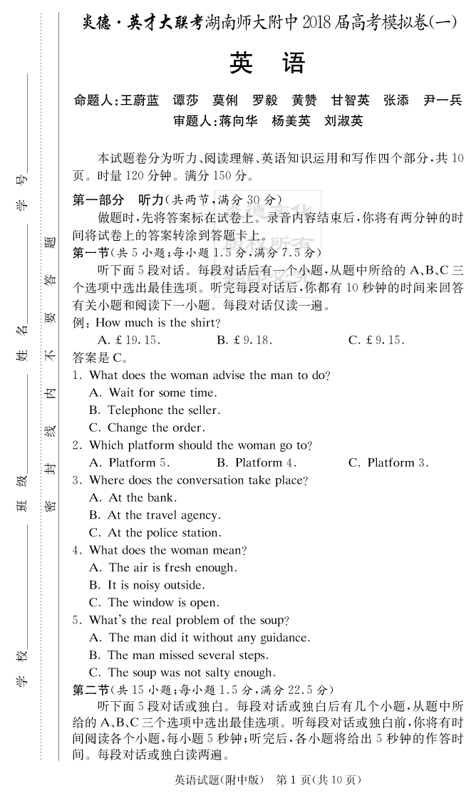 | 資源類別: | 名校月考 | |