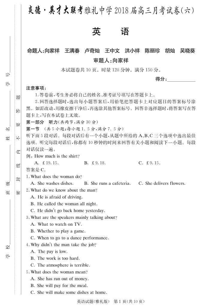| 資源類別: | 名校月考 | |