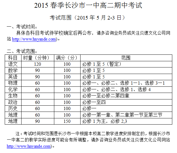 下一篇:2015春季長(zhǎng)沙市一中高二學(xué)業(yè)水平考試仿真模擬試卷一考試時(shí)間安排(2015年5月15-16日)