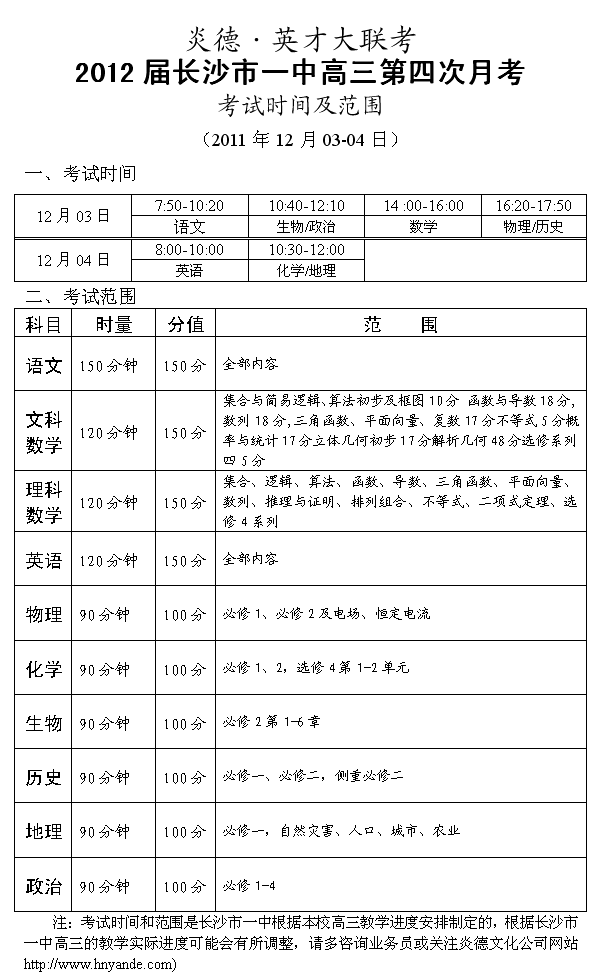 下一篇:炎德英才大聯(lián)考長(zhǎng)沙市一中2012屆高三第五次月考考試時(shí)間和范圍