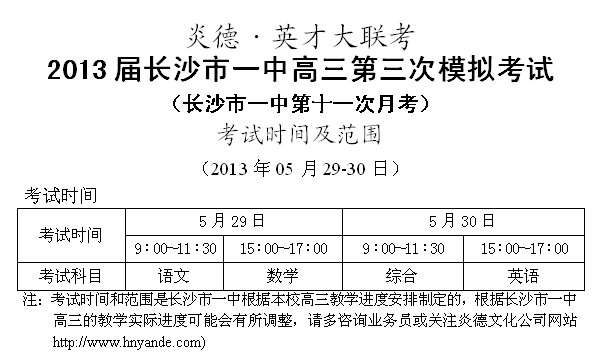 炎德英才大聯(lián)考長(zhǎng)沙市一中2013屆高三第十一次月考考試時(shí)間
