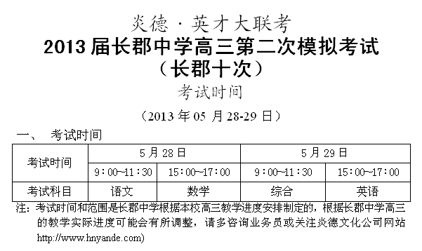 炎德英才大聯(lián)考長郡中學(xué)2013屆高三第十次月考考試時間