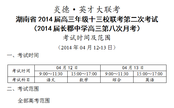 下一篇:炎德英才大聯(lián)考長(zhǎng)郡中學(xué)2014屆高三第一次模擬(第9次月考)考試時(shí)間和范圍(2014.05.0
