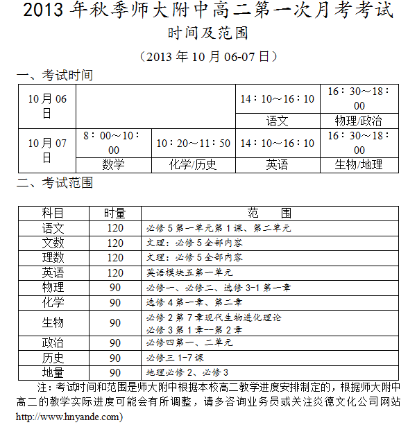 下一篇:2013年秋季師大附中高二期中考試時間和范圍(2013.11.07-08)