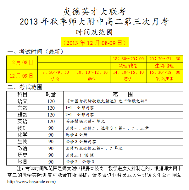 上一篇:2013年秋季師大附中高二期中考試時間和范圍(2013.11.07-08)