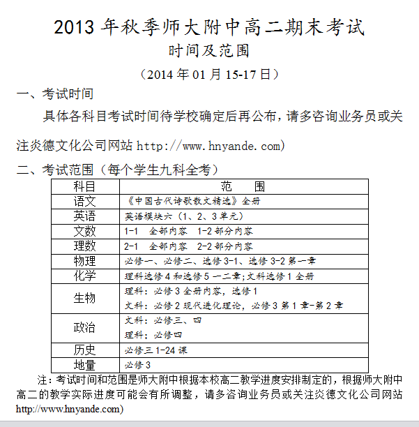 上一篇:2013年秋季師大附中高二第三次月考考試時(shí)間和范圍(2013.12.6-7)