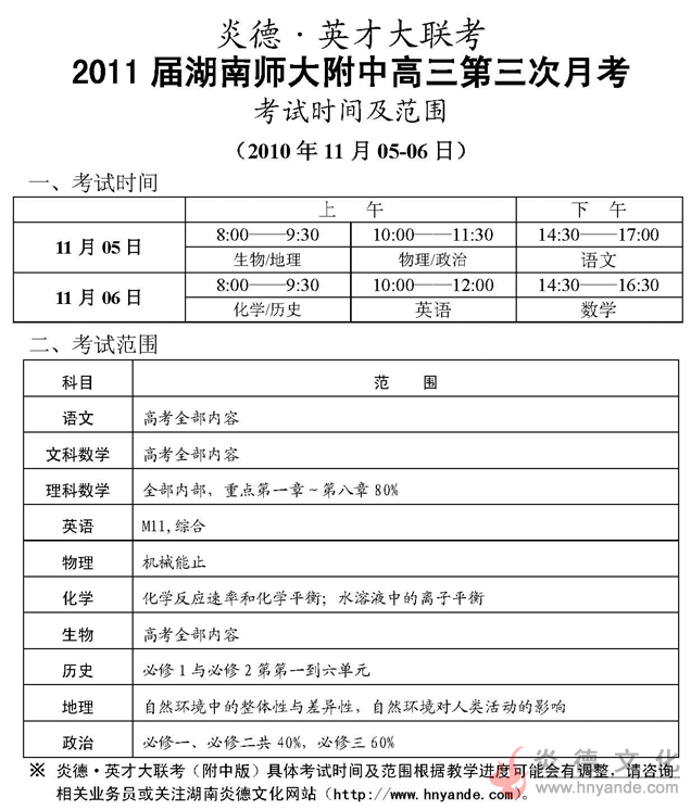 上一篇:炎德英才大聯(lián)考湖南師大附中2011屆高三第二次月考考試時間和范圍