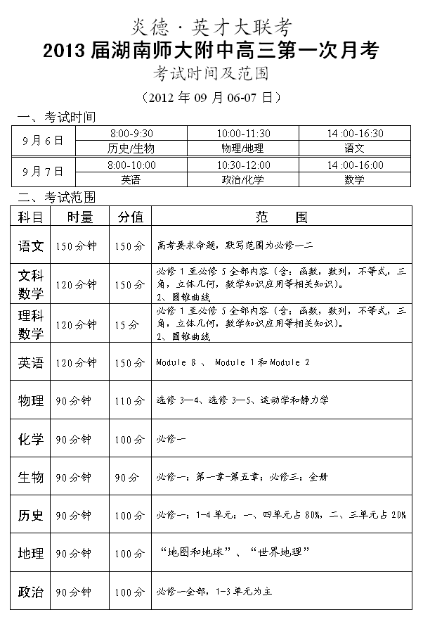 下一篇:炎德英才大聯(lián)考湖南師大附中2013屆高三月考試卷考試時(shí)間和范圍(第2-10次)