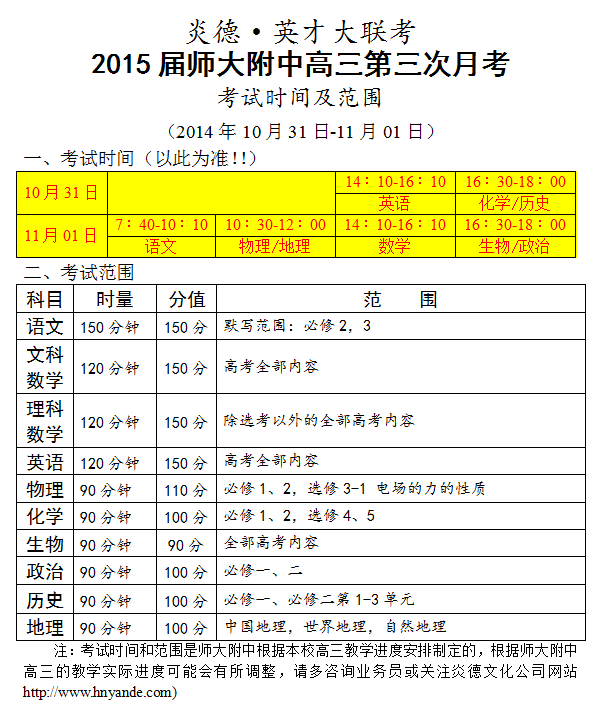 上一篇:炎德英才大聯(lián)考師大附中2015屆高三第2次月考考試時間和范圍(2014.10.04-05)