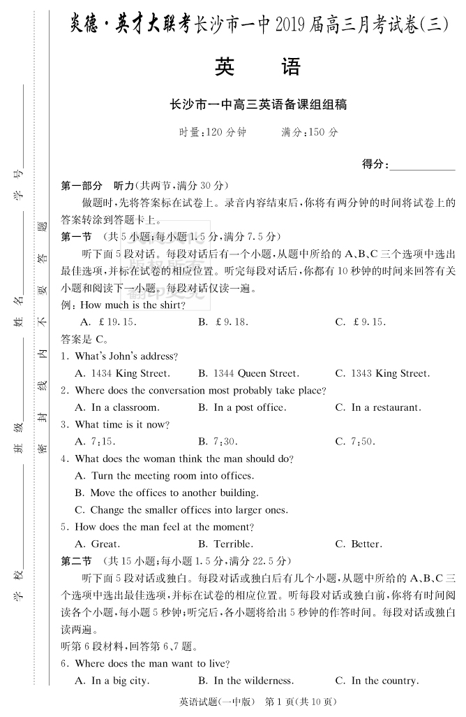 | 資源類別: | 名校月考 | |