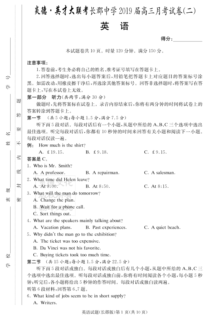 | 資源類別: | 名校月考 | |