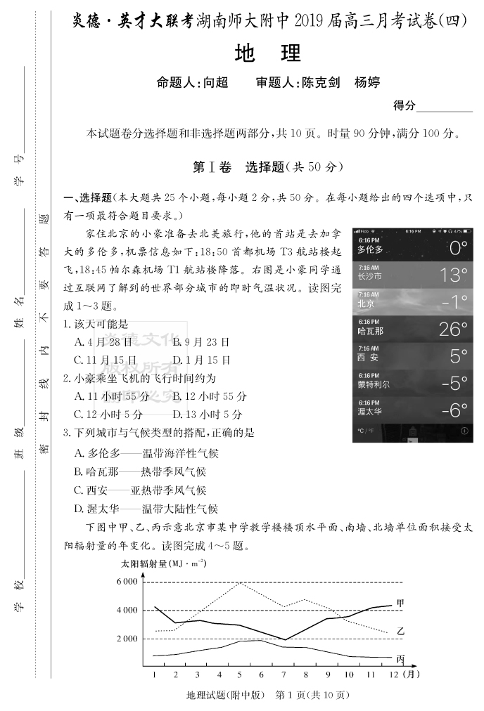 2026湖南師大附中新高考考前小題訓練·地理