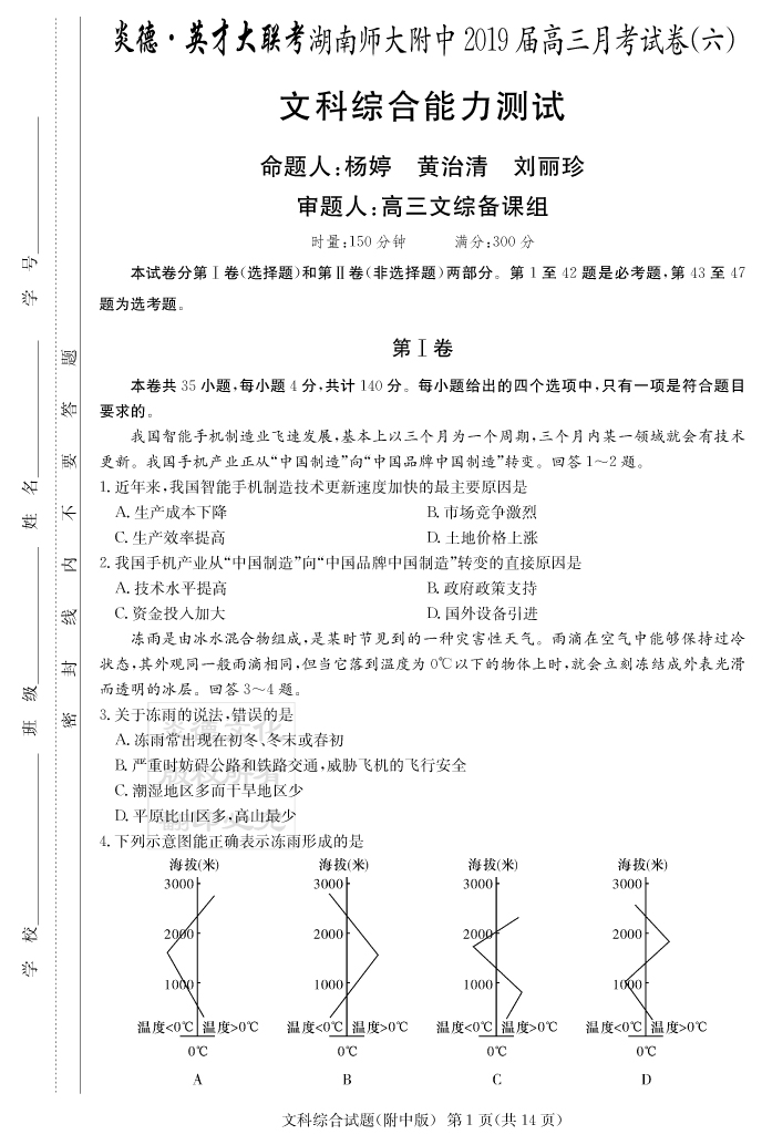 2026湖南師大附中新高考考前小題訓練·地理