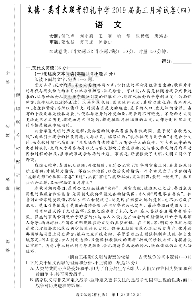 | 資源類別: | 名校月考 | |