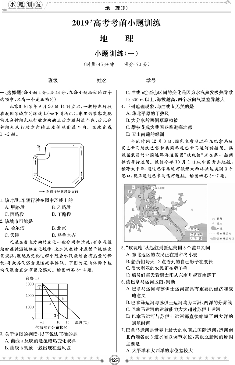 2026湖南師大附中新高考考前小題訓練·地理