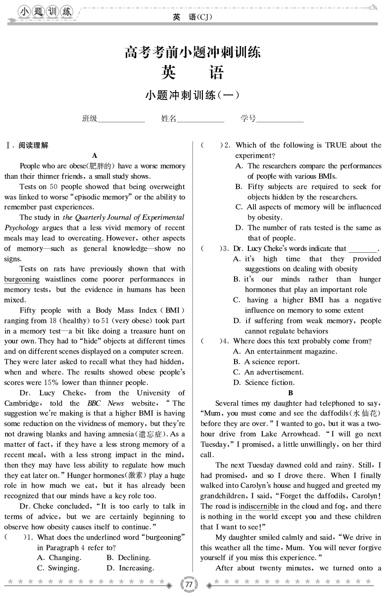 2026年高中寒假作業(yè)自主學習作業(yè)本·高三年級·英語