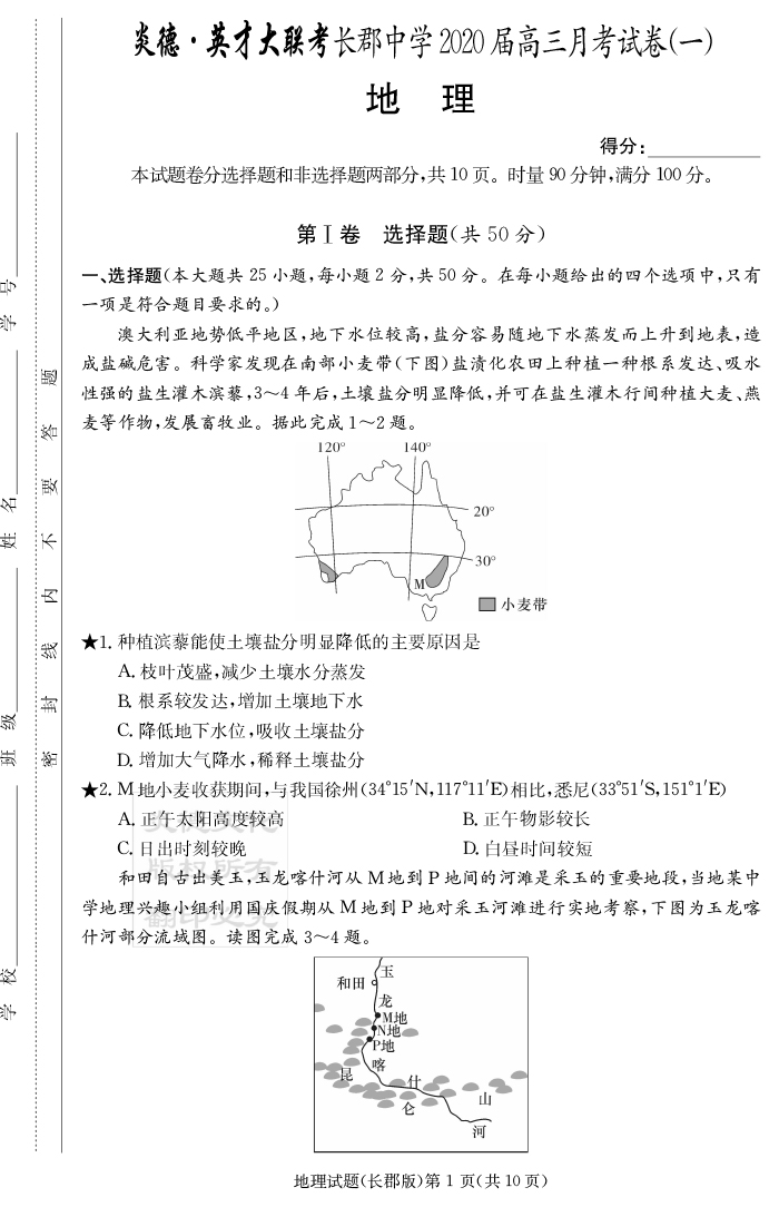 2026年高中寒假作業(yè)自主學習作業(yè)本·高三年級·地理