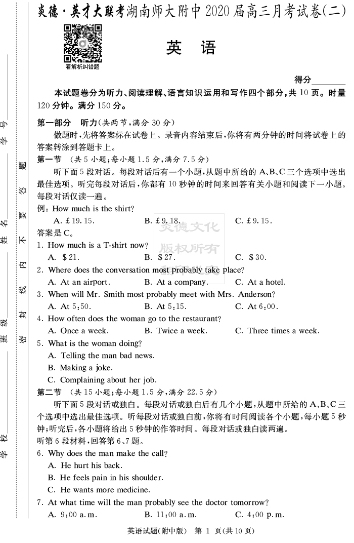 | 資源類別: | 名校月考 | |