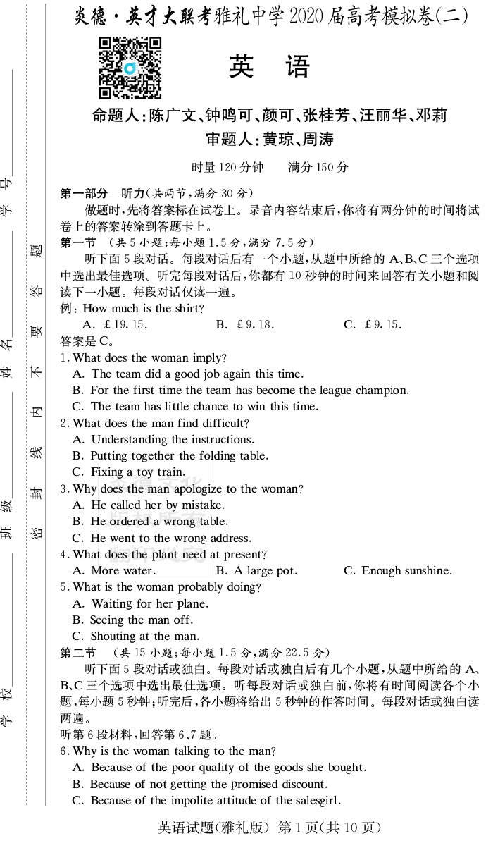 | 資源類(lèi)別: | 名校月考 | |