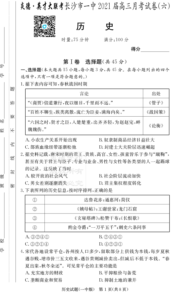 | 資源類別: | 名校月考 | |