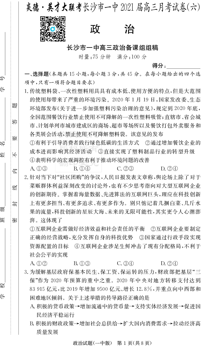 | 資源類別: | 名校月考 | |