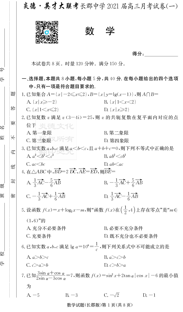 下一篇:【物理】炎德英才大聯(lián)考2021屆長郡中學高三1次月考