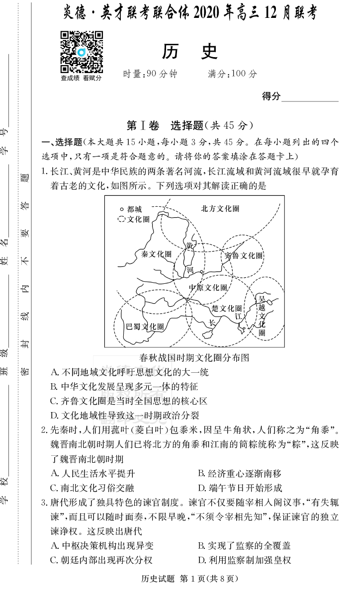 下一篇:【生物】炎德英才大聯(lián)考2021屆長郡中學高三4次月考(高三聯(lián)合體12月聯(lián)考)
