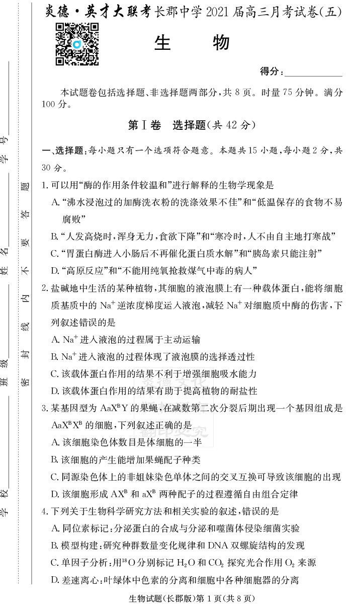 | 資源類別: | 名校月考 | |