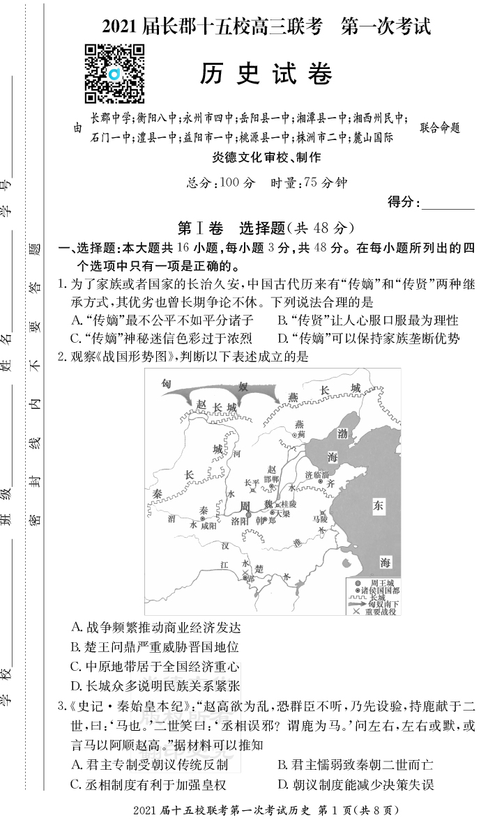 下一篇:【生物】炎德英才大聯(lián)考2021屆長(zhǎng)郡中學(xué)高三7次月考(十五校聯(lián)考一)
