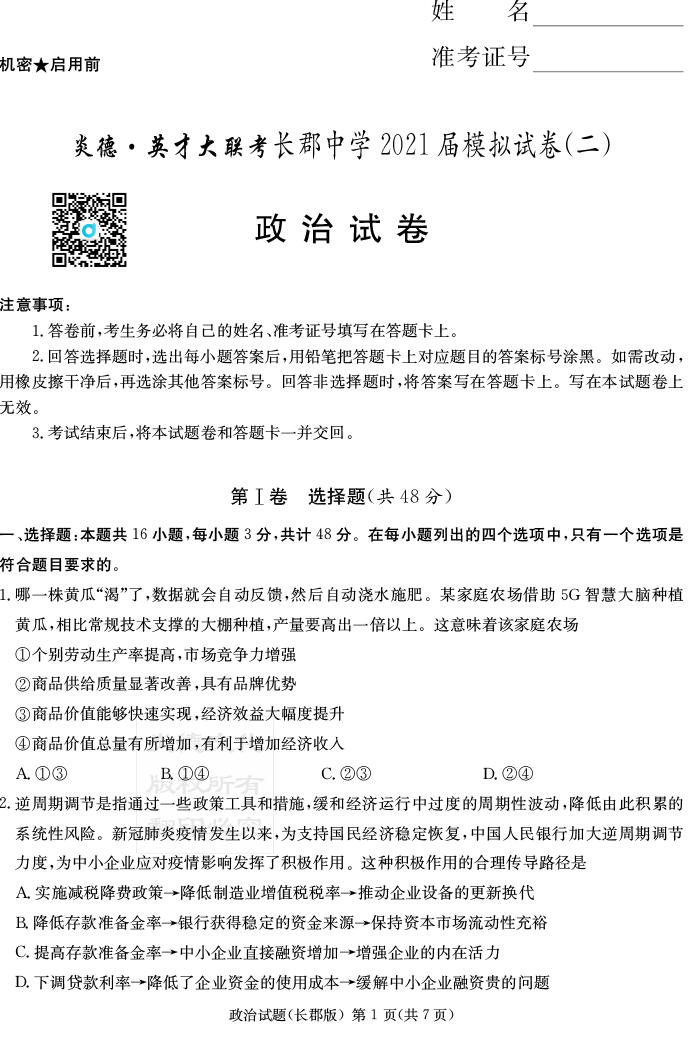 上一篇:【語文】炎德英才大聯(lián)考2021屆長郡中學(xué)高三10次月考(模擬二)
