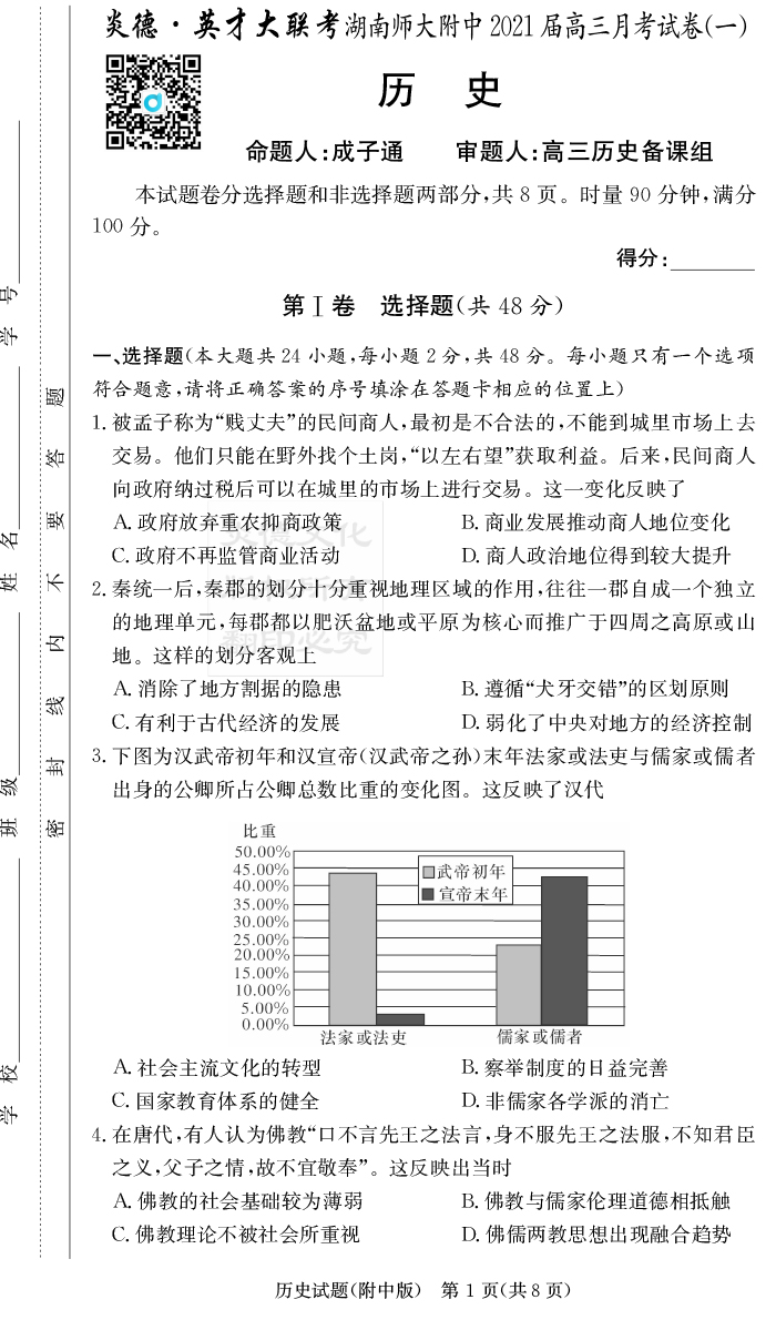 2026湖南師大附中新高考考前小題訓練·歷史