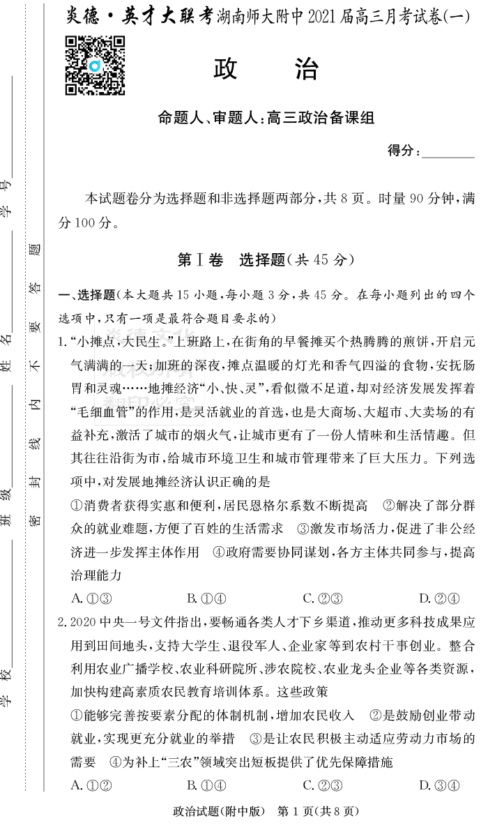 | 資源類別: | 名校月考 | |