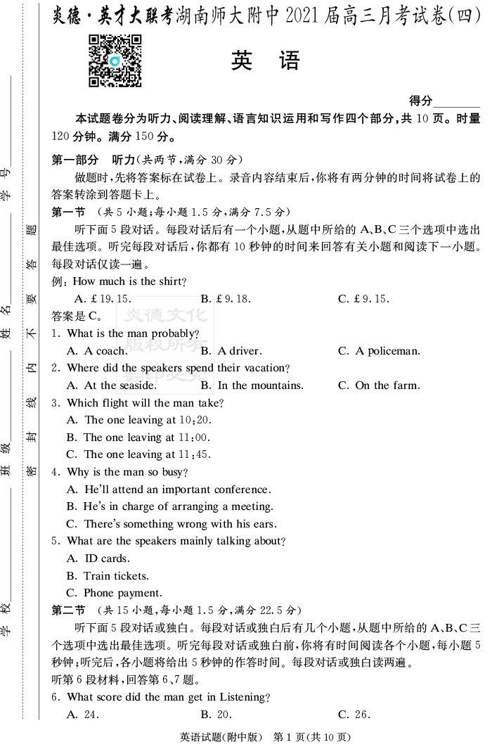 | 資源類別: | 名校月考 | |