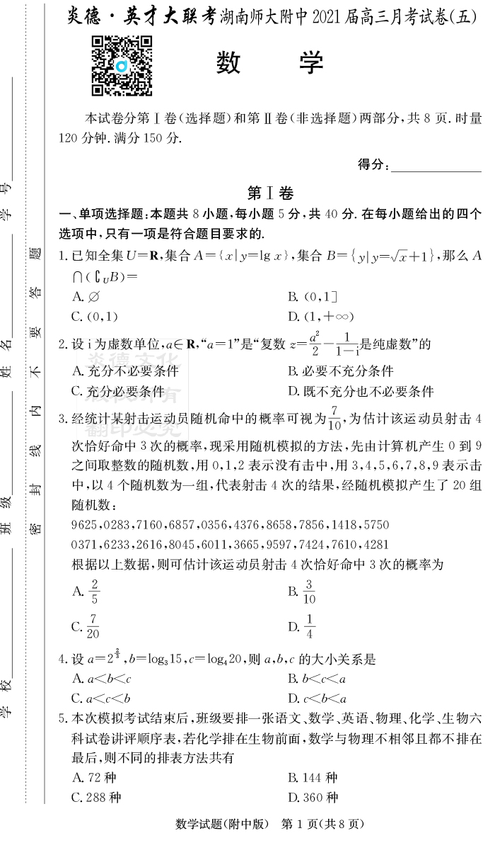 2026湖南師大附中新高考考前小題訓練·數(shù)學