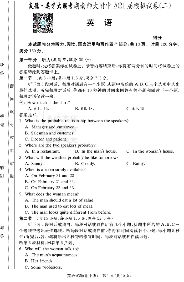 下一篇:【語文】炎德英才大聯(lián)考2021屆湖南師大附中高三9次月考(模擬二)