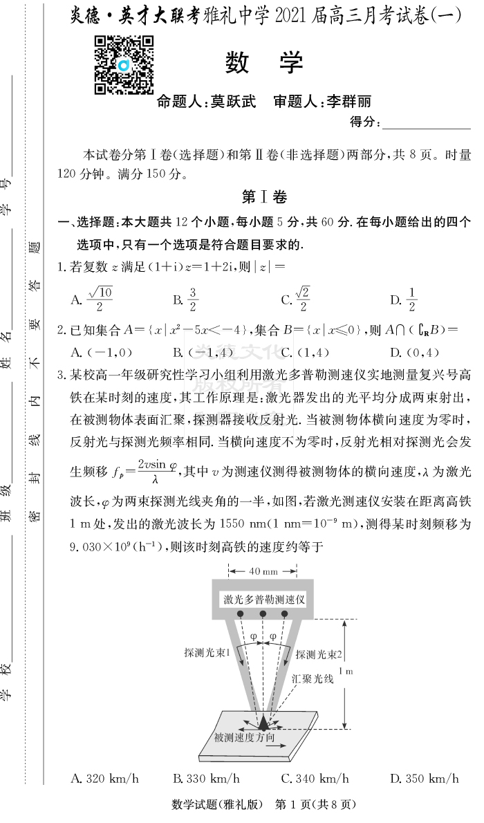 【數(shù)學(xué)】炎德英才大聯(lián)考2021屆雅禮中學(xué)高三1次月考