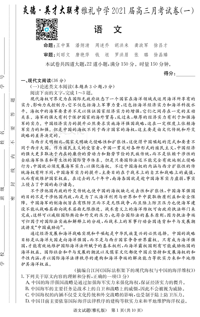 | 資源類別: | 名校月考 | |