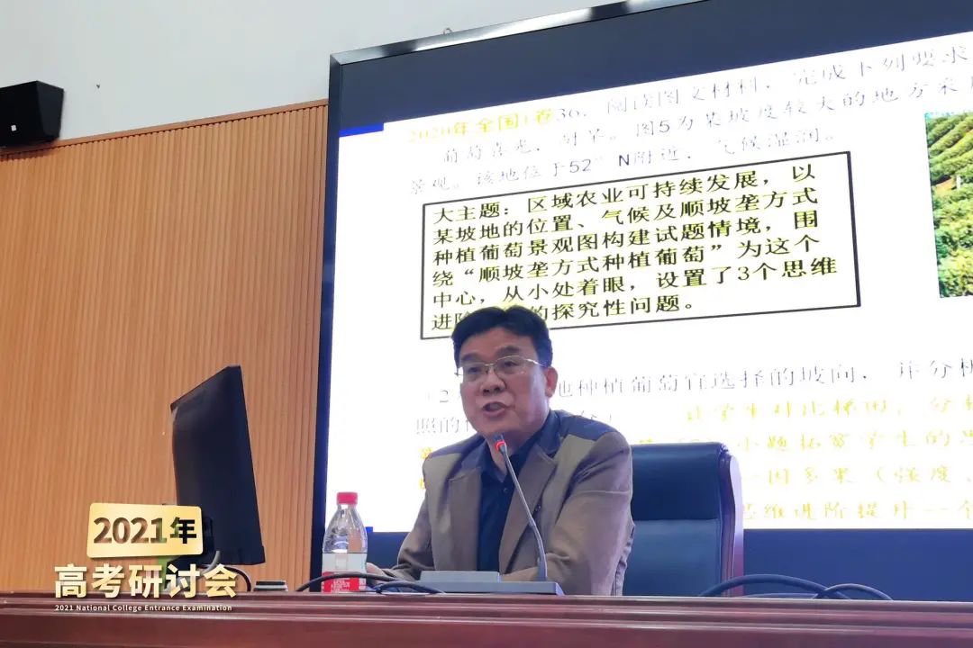 石門一中陳振華老師主要針對(duì)十五校聯(lián)考試卷進(jìn)行分析,從命題意圖出發(fā),著重詳解了試卷部分非選擇題的難點(diǎn)和疑點(diǎn),深入探究地理學(xué)科核心素養(yǎng)的考量。