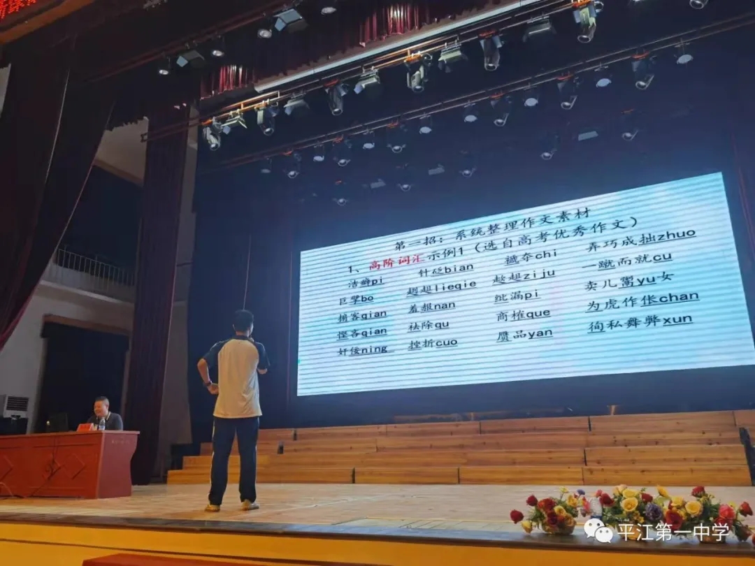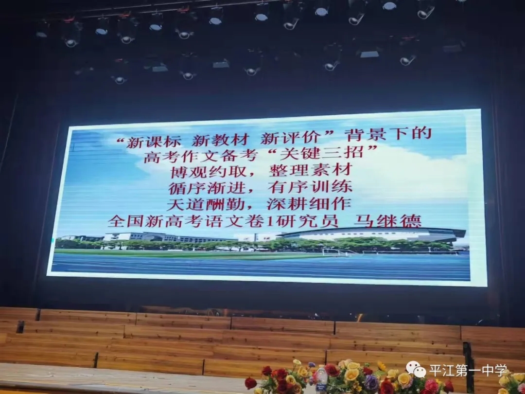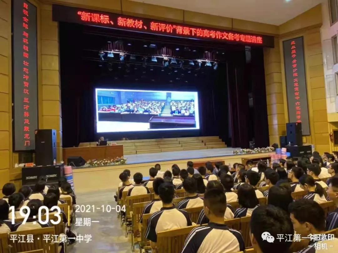 為進(jìn)一步解析2022新高考動(dòng)態(tài),把握高考新資訊,科學(xué)備考,10月4日晚,我校特邀請(qǐng)了全國語文名師、長郡中學(xué)特聘高中語文研究員、清北班培訓(xùn)專家、湖南省高考評(píng)卷專家馬繼德老師蒞臨平江一中進(jìn)行專題講座。學(xué)校黨委委員、校長助理、教導(dǎo)處主任單五柱老師、教研室主任許衛(wèi)兵老師、高三語文教師、班主任及全體高三學(xué)生參加了講座。