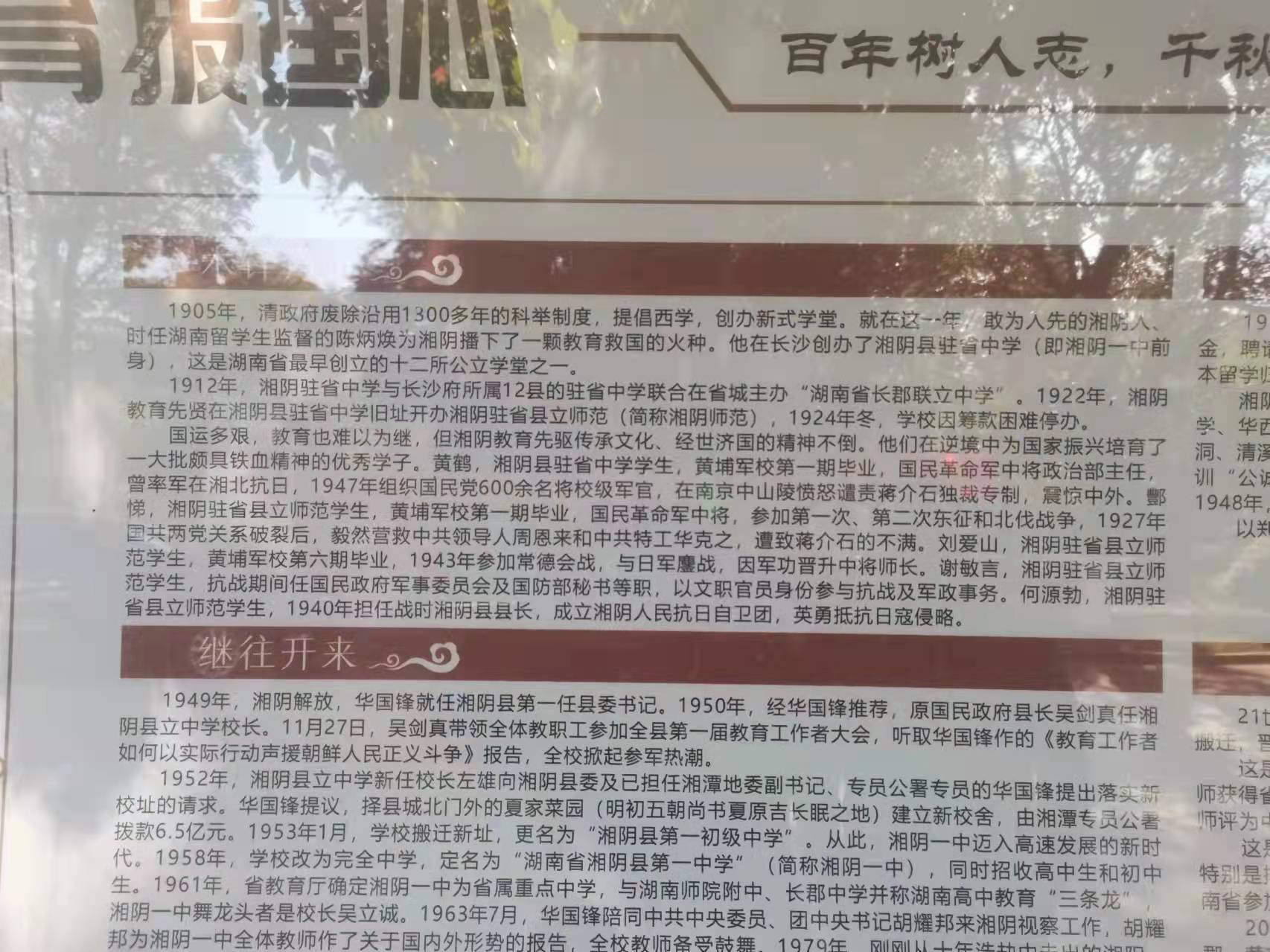 湘陰縣第一中學(xué)前身為創(chuàng)辦于1905年(清光緒32年)的“湘陰駐省中學(xué)”,1958年,定名為“湖南省湘陰縣第一中學(xué)”。