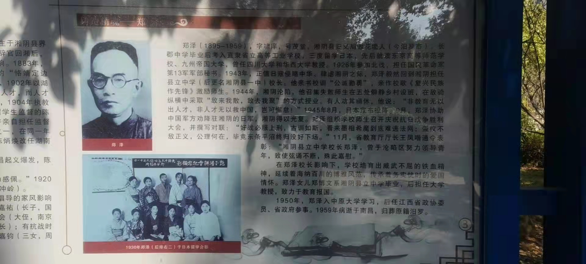 1944年5月27日,日軍侵縣,湘陰淪陷,學(xué)校疏散。次年2月,由鄭澤校長(zhǎng)集聚失散生在洪源洞、清溪、道南、文洲、錫安鄉(xiāng)等五處僻靜鄉(xiāng)村設(shè)立分班,在敵騎縱橫中采取敵來我散,敵去我聚的方式授業(yè),度過了一段艱難的歲月。