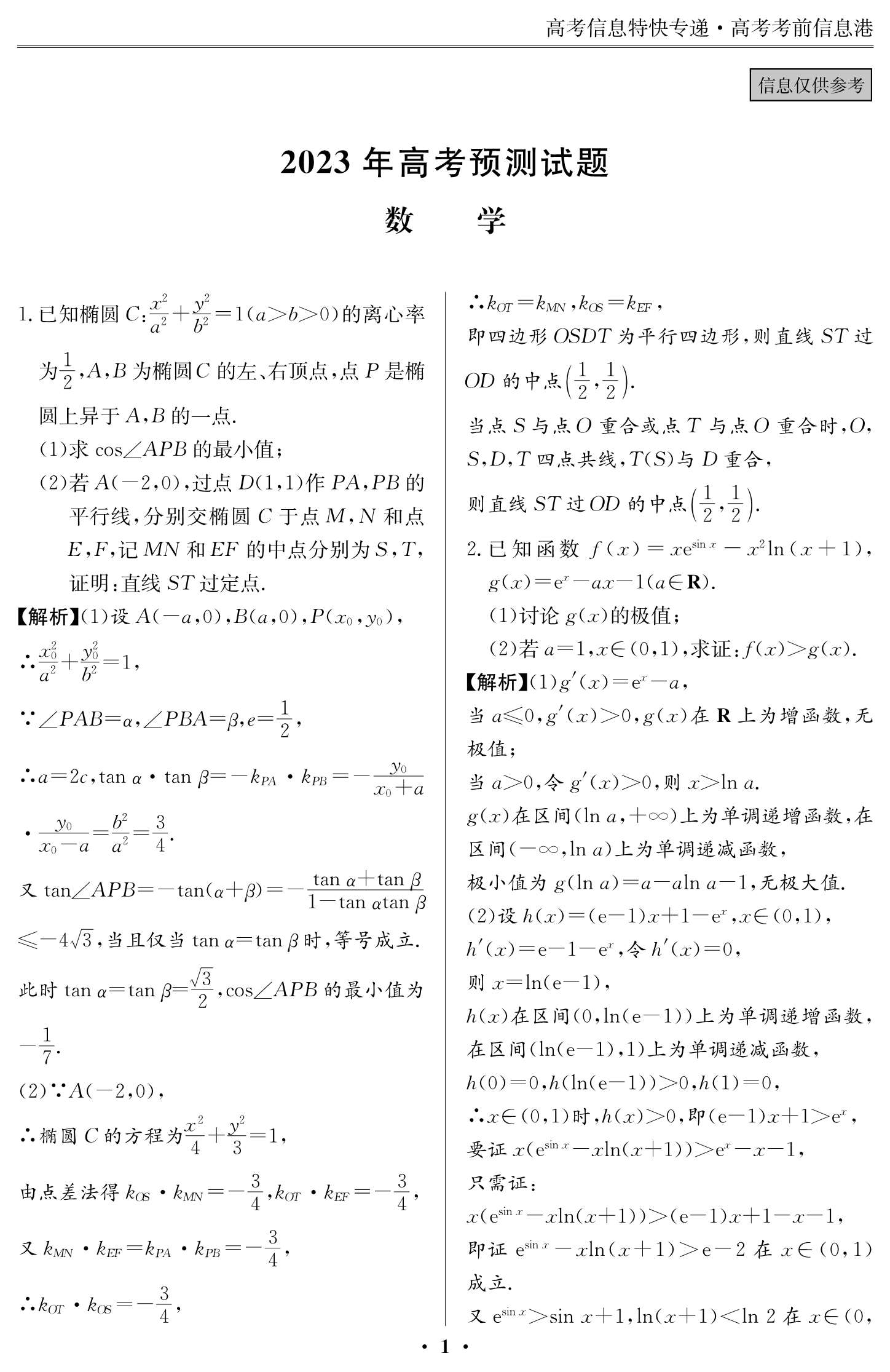 2023年高考考前預(yù)測信息補充內(nèi)容(一)5月30日