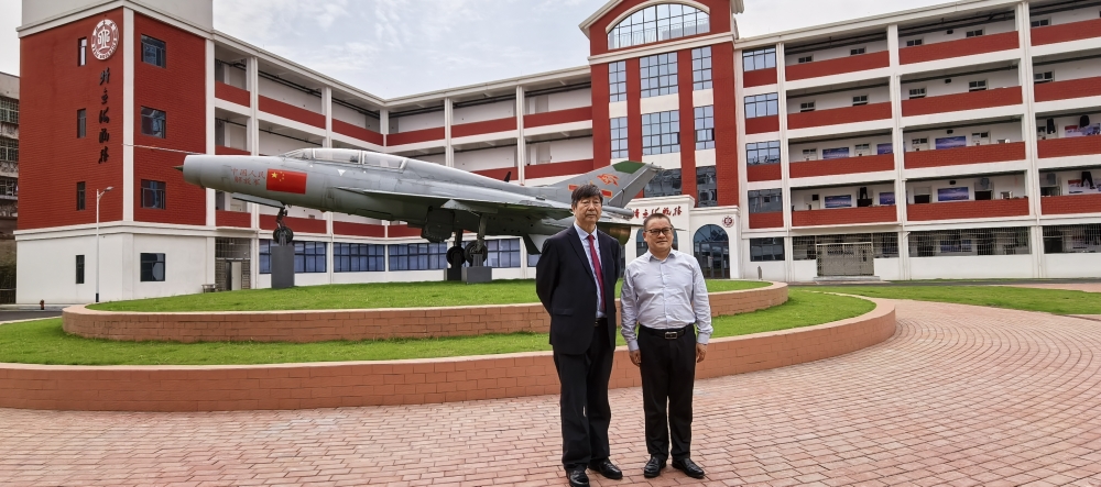 講座結(jié)束后,湘潭縣第一中學黨委書記齊學軍、黨委副書記、校長唐樂軍、肖榮、郭良玉等熱情接待了姜春良將軍一行,陪同大家參觀了校園和海航樓。湘潭縣第一中學創(chuàng)辦于1946年,校園占地16.23萬平方米,建筑面積12.69萬平方米。學校秉承“剛勁、務實、敢為人先”的湖湘精神,銳意進取,積淀了深厚的辦學底蘊;擁有湘潭大學、湖南科技大學、湖南工程學院等全國重點高校豐富的教學科研資源。學校取得了豐碩的辦學成果:學校是湖南省示范性普通高級中學、湖南省海軍青少年航空學校、全國文明校園、全國五四紅旗團委、全國青少年校園足球特色學校、全國青少年校園籃球特色學校、全國國防教育特色學校、中國百強中學、湖南省首屆魅力校園,也是全省同時榮膺清華、北大直薦學生資質(zhì)的六所高級中學之一,二十多年來持續(xù)領跑湘潭教育。