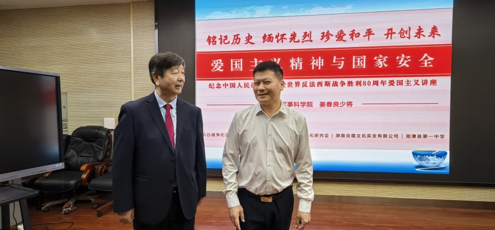 為紀念中國人民抗日戰(zhàn)爭暨世界反法西斯戰(zhàn)爭勝利80周年,弘揚偉大抗戰(zhàn)精神,深化青少年愛國主義教育,湖南炎德文化實業(yè)有限公司、抗日戰(zhàn)爭紀念網(wǎng)、抗日戰(zhàn)爭圖書館、長沙市抗戰(zhàn)文化研究會決定聯(lián)合主辦“銘記歷史 緬懷先烈 珍愛和平 開創(chuàng)未來”愛國主義教育講座,邀請中國人民解放軍軍事科學研究院研究員姜春良少將主講《愛國主義和國家安全》。