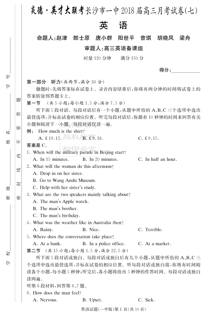 | 資源類別: | 名校月考 | |